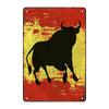 Ajoutez une touche de force et de tradition à votre intérieur avec cette Plaque Métal Taureau Rouge, qui met en scène la silhouette noire majestueuse d’un taureau en pleine allure, sur un fond texturé aux couleurs ardentes du drapeau espagnol. Le rouge et le jaune, volontairement usés et grattés, évoquent l’authenticité des arènes, la chaleur de l’été castillan et l’intensité des racines culturelles profondes de l’Espagne. Le contraste puissant entre le noir du taureau et l’arrière-plan flamboyant capte immédiatement l’attention et véhicule une esthétique à la fois fière et indomptable.