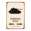 Ajoutez une bonne dose d’autodérision militaire à votre déco avec cette Plaque Métal Tank, sur laquelle trône un char d’assaut noir stylisé, accompagné d’un message sans équivoque : "Parking Only – All Others Will Be Crushed". Le contraste fort entre le fond beige vieilli et le tracé net du tank donne à l’ensemble une allure rétro, rappelant les panneaux militaires ou les signalisations d’accès interdit. L’effet légèrement rouillé sur les bords renforce l’esthétique vintage tout en soulignant le caractère affirmé de la plaque.