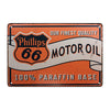 Cette Plaque Métal Huile Moteur met à l’honneur la célèbre marque Phillips 66, un pilier de l’histoire automobile américaine. Avec son design saisissant, mêlant l’orange vibrant au noir profond, elle rappelle les panneaux publicitaires qui jalonnaient les highways des États-Unis. Le logo "Phillips 66", inscrit dans un écusson distinctif, évoque immédiatement les valeurs de qualité et de fiabilité qui ont fait la renommée de la marque. Les mentions "100% Paraffin Base" et "Our Finest Quality" soulignent l’engagement de Phillips 66 à fournir des lubrifiants haut de gamme pour des performances moteur optimales, un clin d'œil à l’innovation et à la technologie de l’époque. Chaque détail, du graphisme rétro aux nuances patinées, renforce l’authenticité et le charme vintage de cette pièce.