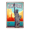 Cette Plaque Métal New-York Vintage met en scène l’un des symboles les plus puissants de l’Amérique : la Statue de la Liberté, qui se dresse fièrement au premier plan, prête à accueillir les voyageurs du monde entier. Derrière elle, la silhouette rougeoyante des gratte-ciels de Manhattan, baignée dans une lumière crépusculaire, donne un relief saisissant à cette composition graphique inspirée des affiches de voyage des années 30 et 40. Les couleurs contrastées, oscillant entre un bleu profond et un orange flamboyant, créent une atmosphère à la fois nostalgique et captivante, parfaite pour apporter une touche d’évasion à votre intérieur.