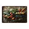 Embellissez votre espace avec cette Plaque Métal Potager, où une belle charrette en bois est remplie de légumes frais et variés, du brocoli aux tomates, en passant par les courgettes et les carottes. Ce visuel, riche en couleurs et en détails, évoque la simplicité et la générosité de la nature, créant une ambiance chaleureuse et accueillante dans n’importe quel espace. Le fond légèrement patiné et l’effet vintage de la plaque lui confèrent un charme intemporel qui rappelle les enseignes d’antan des marchés et des fermes.