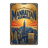Fabriquée en métal de haute qualité, cette plaque arbore des finitions vieillies qui accentuent son charme rétro et son aspect authentique. Son design soigné, associé à une palette de couleurs vibrantes, en fait un élément idéal pour embellir un bureau, un salon ou un espace dédié aux voyages et aux grandes métropoles. Grâce à son format polyvalent, elle peut aussi bien être suspendue qu’apposée sur un meuble, s’adaptant à tous les types d’intérieurs. Chaque détail de cette illustration, des reflets dorés aux tracés architecturaux précis, reflète l’essence même de Manhattan et de son ambiance unique.